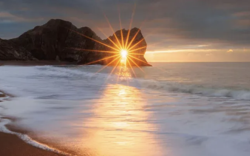Фотограф Джек Лодж витратив чотири роки, чекаючи на ідеальні умови, щоб зробити захоплюючий знімок “сонячної зірки” у скелястому отворі Дердл-Дор на Юрському узбережжі Великої Британії.