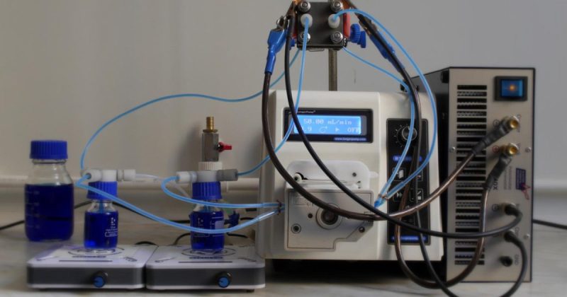 NDI-похідні відомі своєю здатністю зберігати два електрони на молекулу, що потенційно збільшує щільність енергії в батареях. Проте раніше їх практичне застосування було обмежене через проблеми з продуктивністю. Щоб вирішити ці труднощі, китайські дослідники синтезували похідні NDI, модифіковані цвіттер-іонами — молекулами з одночасно позитивно та негативно зарядженими іонними центрами. Ця модифікація сприяє утворенню електростатичного відштовхування між молекулами, що підвищує стабільність електроліту. Експериментальна проточна батарея, яка використовує створений електроліт у поєднанні з католітом на основі фероціаніду калію, продемонструвала ефективну роботу при концентрації електронів 2 М. Вартість матеріалів електроліту становить близько 6,18 доларів за ампер-годину, що робить технологію потенційно доступнішою для масового використання. Католіт, що застосовується в батареї, є лужним розчином (pH 8-9), який отримують під час електролізу води і іноді називають «живою водою» через його властивості.