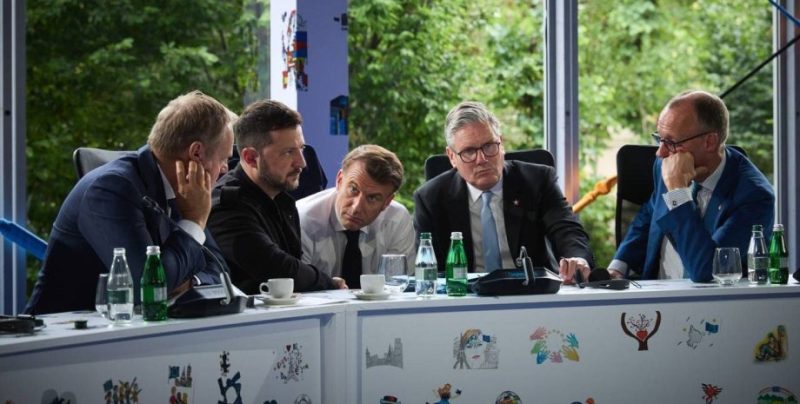 У документі, оприлюдненому від імені президента Франції Емманюеля Макрона, прем’єр-міністерки Італії Джорджі Мелоні, канцлера Німеччини Фрідріха Мерца, прем’єр-міністра Польщі Дональда Туска, прем’єр-міністра Великої Британії Кіра Стармера, президентки Єврокомісії Урсули фон дер Ляєн та президента Фінляндії Александера Стубба, наголошується, що будь-які кроки до миру повинні здійснюватися із залученням України.